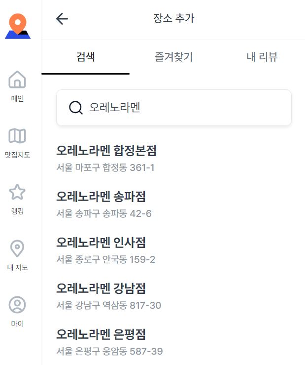 3.내가 추가하고싶은 맛집을 추가합니다.