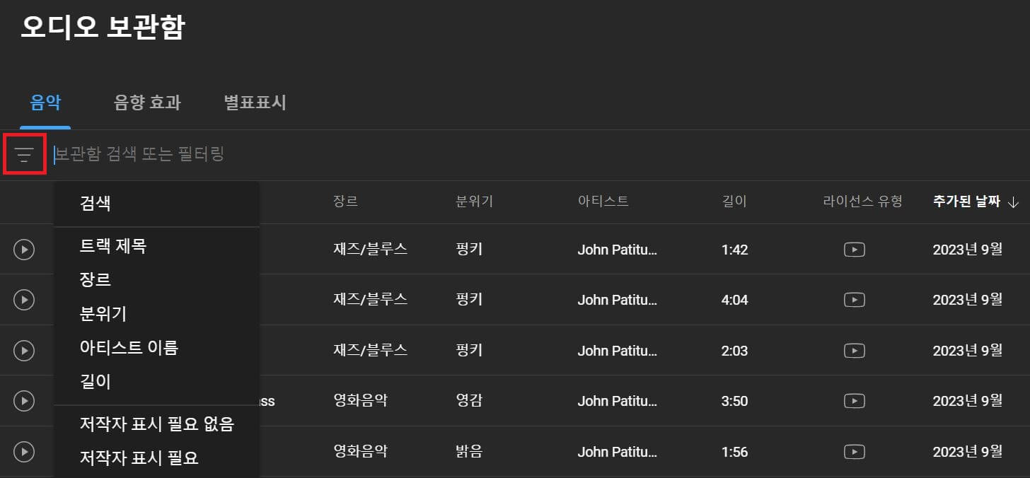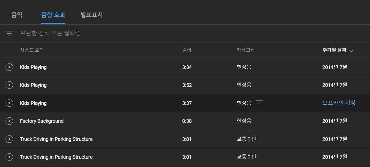 youtube studio는 음악 뿐만 아니라 무료 저작권 효과음도 제공합니다.