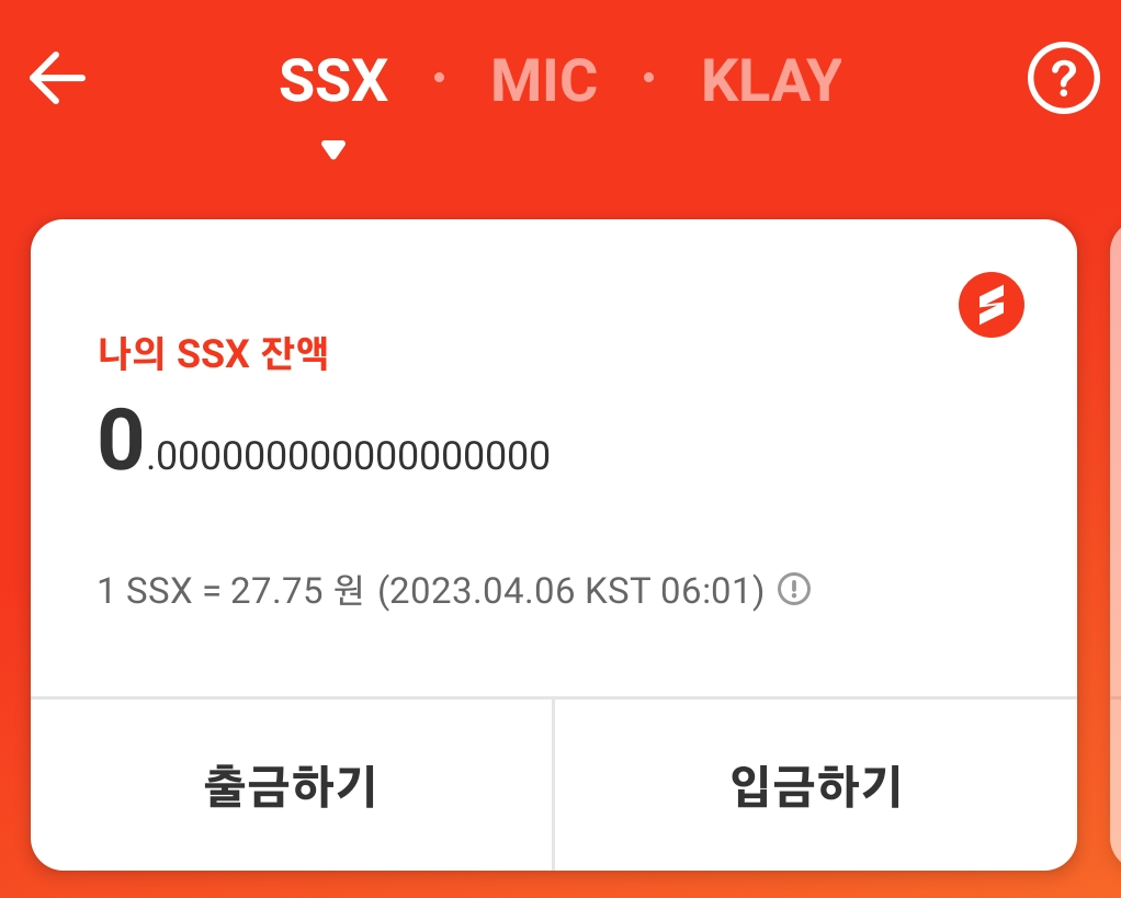 후원받거나 입금한 썸씽(SSX)코인은 이곳에 보관되어 후원, 선물, 선물+, 포스팅 할 때 사용되거나 출금가능합니다. 출금에는 Klip지갑이 있어야하니 만들어 두는걸 추천 드립니다.