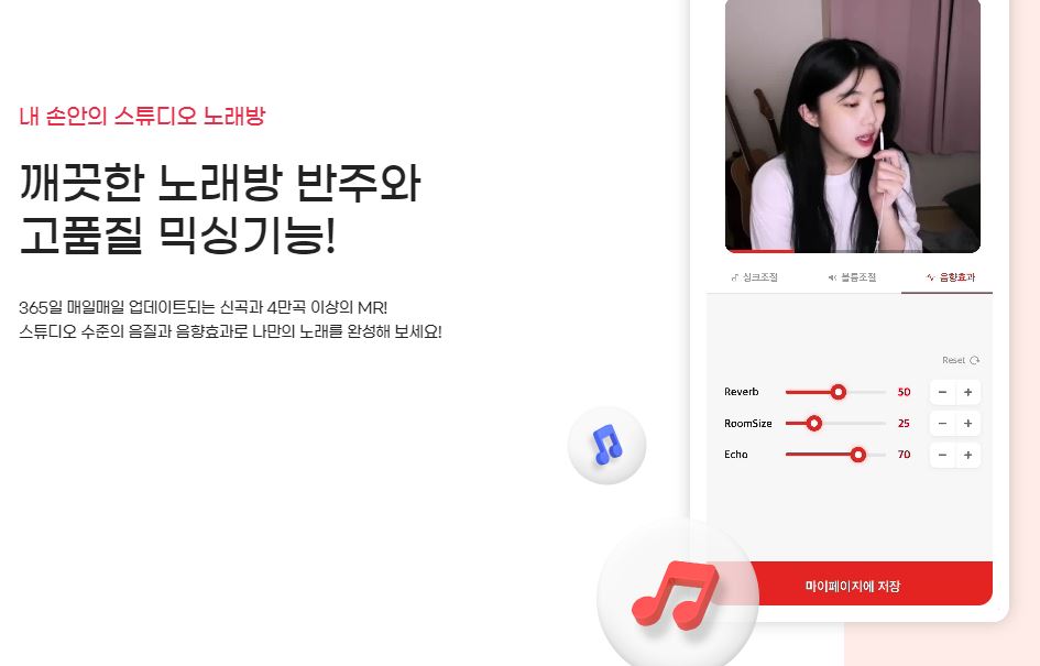 4만곡 이상의 MR 스튜디오 수준의 음질과 음향효과로 자신만의 컨텐츠를 만들 수 있다는게 가장 큰 장점인것 같습니다.