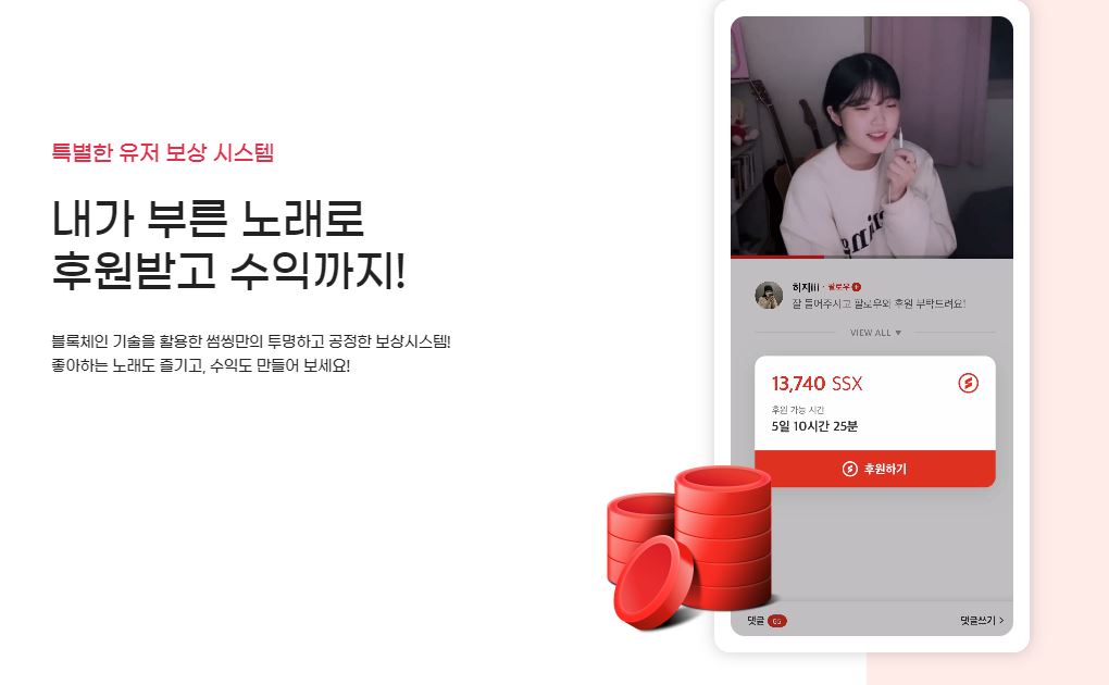 사용자가 썸씽 모바일 애플리케이션에서 노래를 부르고 녹음을 게시할 때 게시물당 맞춤형 지갑이 만들어집니다. 이 지갑의 유효 기간은 2주이며, 이 기간 동안 청취자들은 SSX 토큰으로 기부하거나 가수를 후원할 수 있습니다.