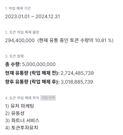 오히려 락업 해제 일정이 있네요. 해제 물량이 많은편은 아니지만 좋은 소식은 아닙니다.