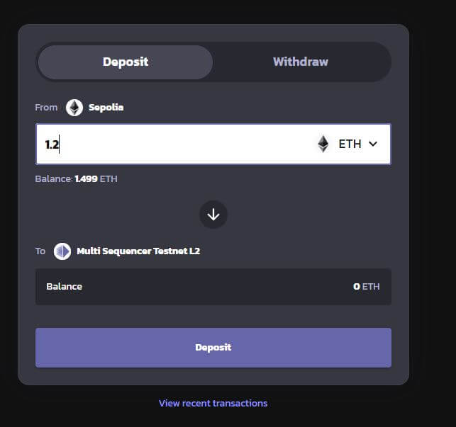 Deposit and Withdraw Sepolia ETH to and fro AltLayer Testnet 입금