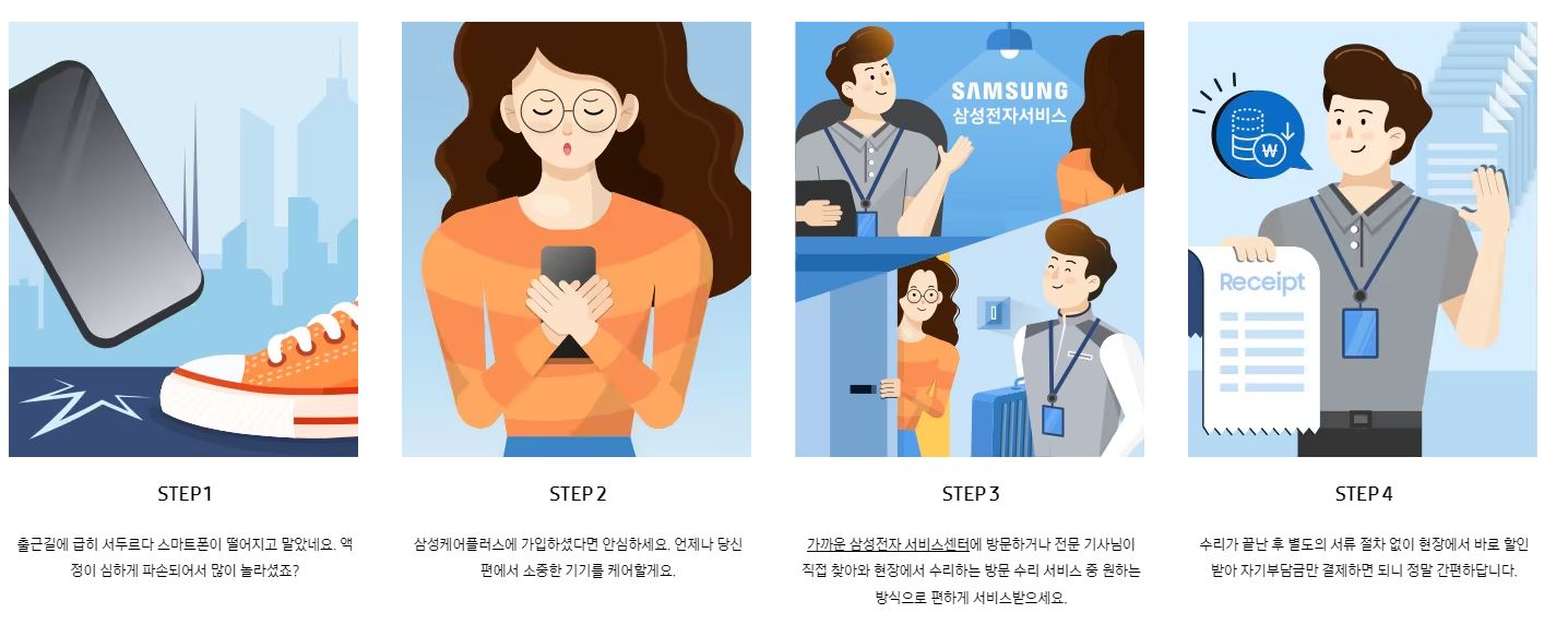 또는 삼성케어플러스 홈페이지를 방문하면 가입 가능합니다.